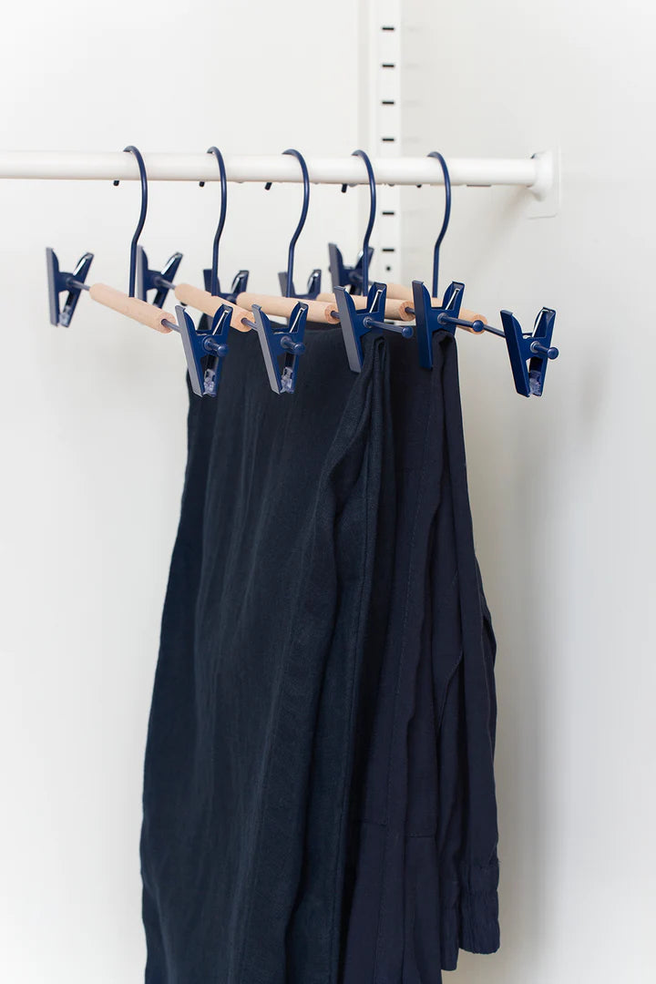 Our fancy clip hangers have a smooth matte powder-coated finish, a wooden detail and two clippy clips ready to hold your clothes just right.