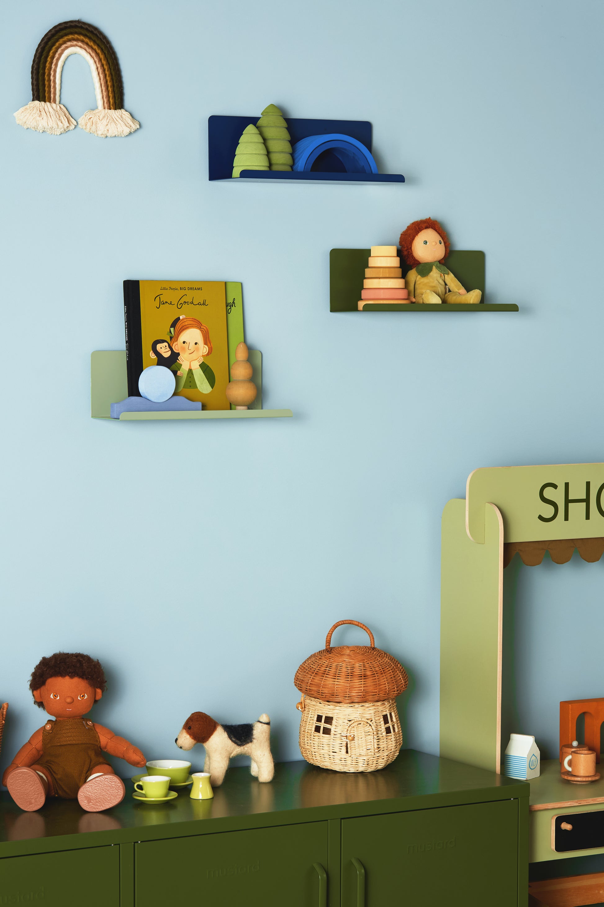 The Ledge is made from the same powder coated steel as our lockers, in our signature rainbow of colours. The last image shows the colour of this shelf as best as we can digitally. Colours will vary on different screens, and lighting will change how the colour looks in your space. We recommend getting yourself a colour swatch to see the exact colour and finish in real life before purchasing.