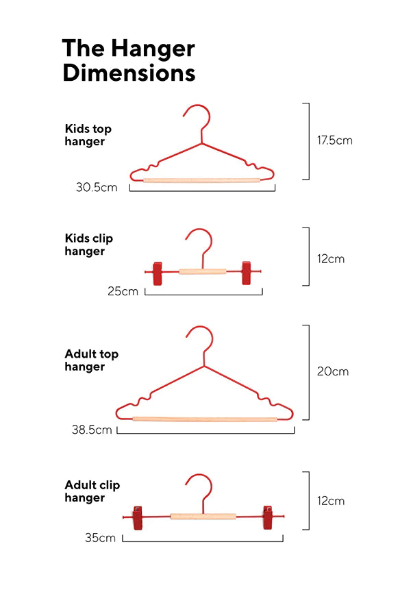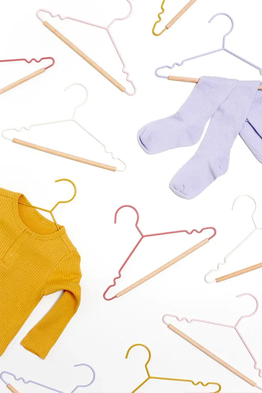 Say hello to the cutest hangers for your little people! Our fancy hangers have a smooth matte powder-coated finish, a wooden detail and a mustard signature 'squiggle' on the sides for added cool factor. These adorable mini hangers will fit clothes from teeny baby size all the way up to age ten.