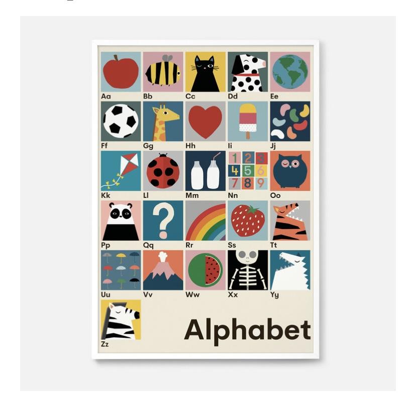 Alphabet prints with colourful illustrations. Available in 3 sizes printed on fine art paper.