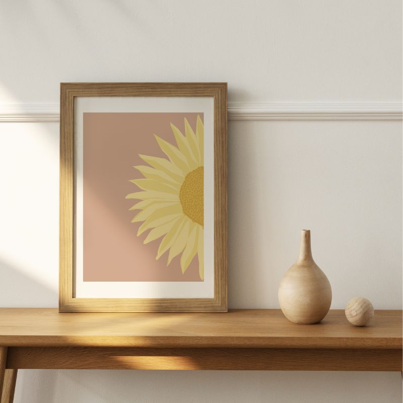 Yellow half flower ( Mauve Delight) against a warm neutral backdrop