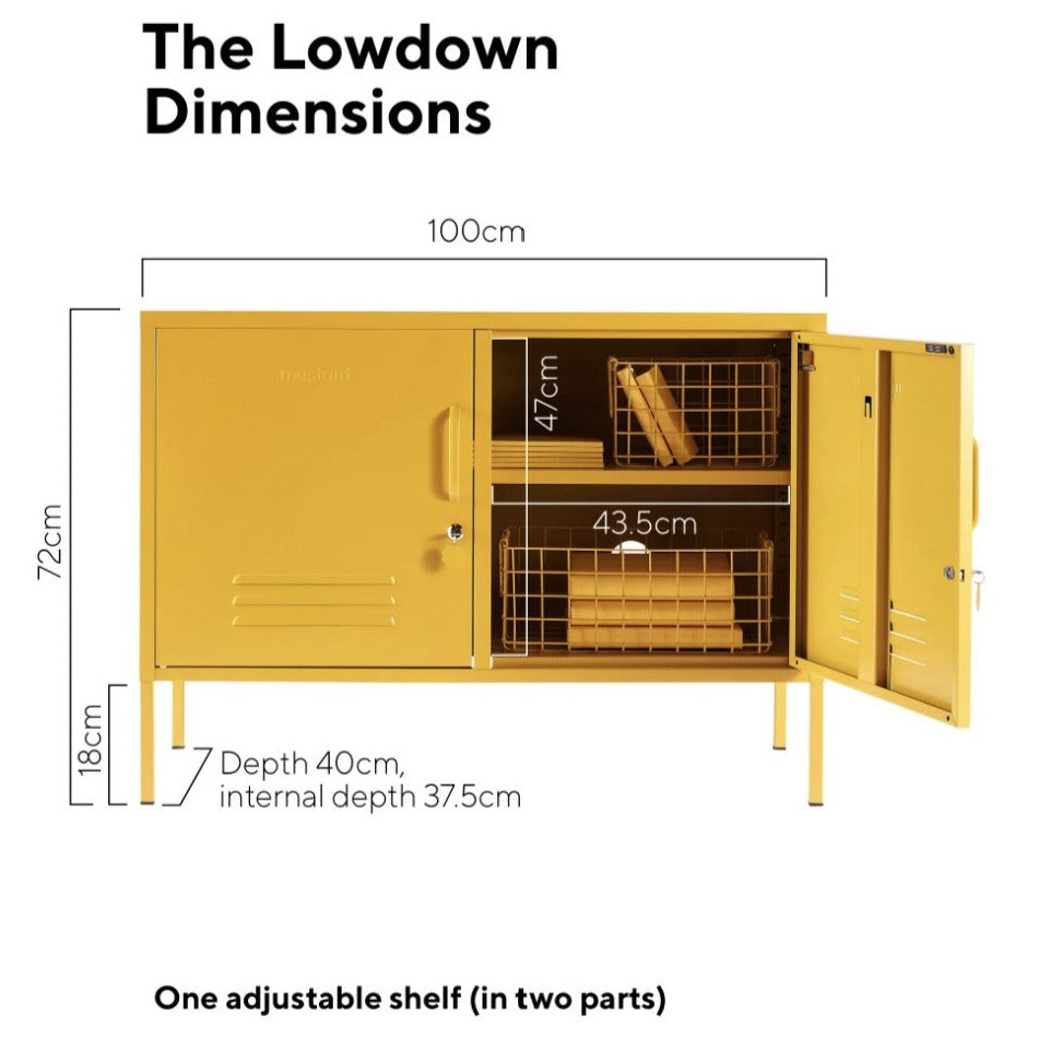The Lowdown locker is your new favourite tv unit, console or office storage. Versatility is her thing. She’s perfectly proportioned and ready for home, work or play. How does The Lowdown compare? It’s the same height as The Shorty but not quite as deep so she’ll fit in narrow spaces but still fit loads inside.