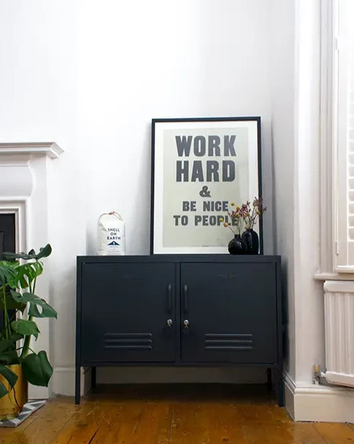 The Lowdown locker is your new favourite tv unit, console or office storage. Versatility is her thing. She’s perfectly proportioned and ready for home, work or play. How does The Lowdown compare? It’s the same height as The Shorty but not quite as deep so she’ll fit in narrow spaces but still fit loads inside.