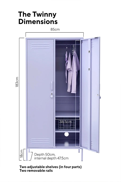 The Twinny is more than just a wardrobe, it's all of your colourful storage dreams in one! Designed for everyone, from teeny baby clothes to a full grown-up wardrobe, The Twinny is all about flexibility.