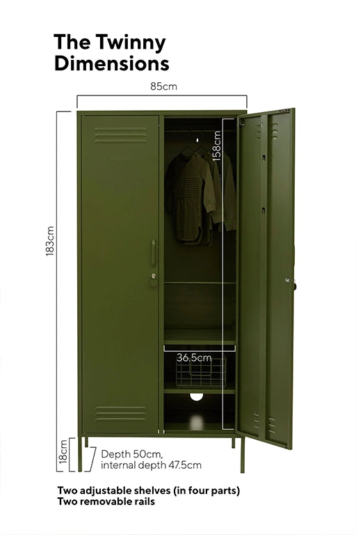 The Twinny is more than just a wardrobe, it's all of your colourful storage dreams in one! Designed for everyone, from teeny baby clothes to a full grown-up wardrobe, The Twinny is all about flexibility.