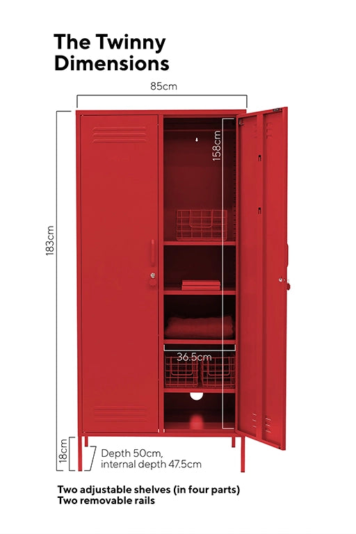 The Twinny is more than just a wardrobe, it's all of your colourful storage dreams in one! Designed for everyone, from teeny baby clothes to a full grown-up wardrobe, The Twinny is all about flexibility.