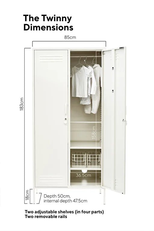The Twinny is more than just a wardrobe, it's all of your colourful storage dreams in one! Designed for everyone, from teeny baby clothes to a full grown-up wardrobe, The Twinny is all about flexibility.