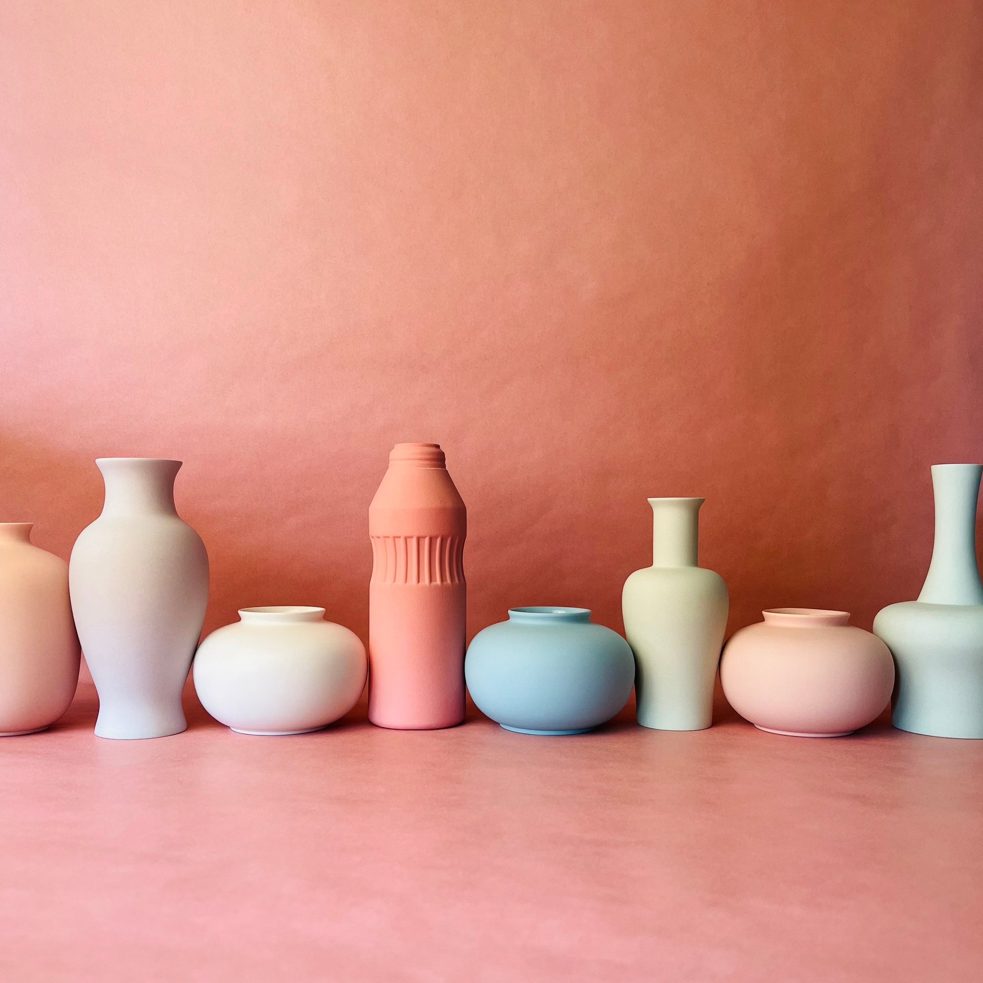Miniature vase in soft pastel, lilac grey porcelain matte finish with glazed interior